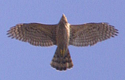 | 特 徴 | 全長♂50cm・♀56.5cm。ハシボソガラス大で他のタカよりも翼が短く幅広く見える。速く羽ばたき短い滑翔を交えて直線的に飛ぶ。 |