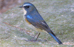 | 特 徴 | 全長14cm。コルリに似ているが、雌雄共に脇が橙色なので見分けられる。