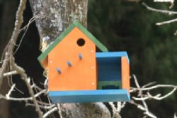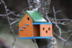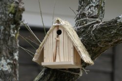 2004.03.28.に掛けた茅葺屋敷をイメージしたバードハウスです。茅葺屋敷正面の梅の木に掛けさせて頂きました。