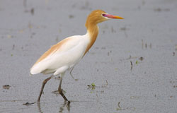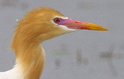 | 特 徴 | 全長50.5cm。夏は頭部から首にかけての橙黄色の羽毛が特徴で、短めで黄色い嘴・黒色の足。冬の羽毛は白色。 |