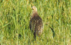 | 習 性 | 本州から九州、種子島に留鳥として分布する。平地から山地の草原や農耕地、河原、林縁などにすみ、地上で昆虫や草の種子や実を食べる。