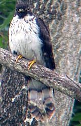 | 特 徴 | 全長32cm。胸から腹のオレンジ色で他のカッコウ類と区別できる。小型のタカに似ているが、尾羽が長く先端が丸い。嘴は黄色と黒色。 |