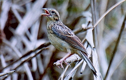 | 習 性 | 種子島以北に主に留鳥として分布し、平地から山地の低木林、林縁、草原などに住む。昆虫や草の実などを食べる。