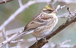 | 特 徴 | 全長16cm。オスは黄色い眉斑や喉、黒い冠羽や過眼線が目立ち、メスは全体的に茶褐色。