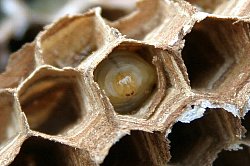 モンスズメバチの幼虫は、働き蜂が21〜28mmであるのに対して25mm程あり割と大きく思えました。 |